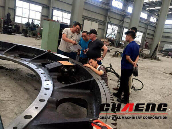 Recently, CHAENG got an achievement on girth gear manufacture again. In June, customers from Chile came to our factory to check the 5.8m girth gear they ordered. And after strictly testing process, the girth gear was successfully accepted.